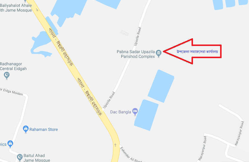পাবনা বাস টার্মিনাল থেকে অথবা শহরের যেকোন স্থান থেকে রিক্সা বা অন্য যেকোন উপায়ে উপজেলা সমাজসেবা কার্যালয়ে আসতে নূরপুর উপজেলা পরিষদ গেইটে ঢুকে হাতের বামে অফিসের সাইন বোর্ড দেখতে পাবেন। চলে আসুন অফিসে।